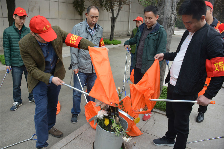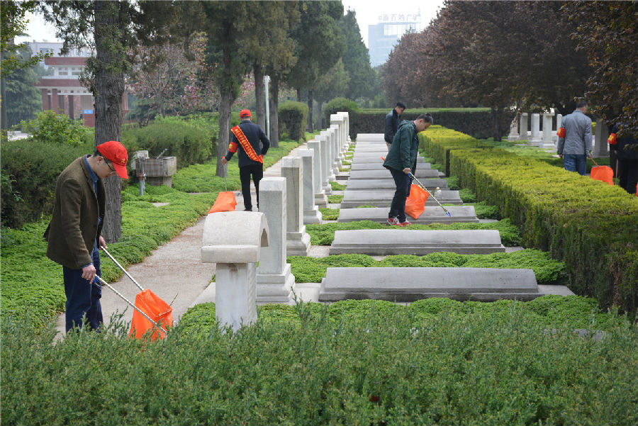 三、開展“倡議文明緬懷,減少廢棄污染”拾撿垃圾志愿服務活動。緬懷先烈活動結(jié)束后,市建投公司志愿者們在烈士陵園內(nèi)開展“倡議文明緬懷,減少廢棄污染”拾撿垃圾志愿服務活動。每位志愿者都手持垃圾鉗,認真將散落在紀念碑前以及隱藏在雜草中的廢棄鮮花、飲料瓶、紙張等垃圾拾撿起來放入提前準備好的垃圾袋中?;顒映掷m(xù)一個小時,志愿者們在祭奠先烈的同時以自己的實際行動表達崇敬之情,并倡導以獻一束花、敬一杯酒、植一棵樹、清掃墓碑等方式寄托哀思,將祭拜逝者的傳統(tǒng)習俗以更加環(huán)保、健康、安全、文明的方式表達,營造文明祭祀的良好氛圍。