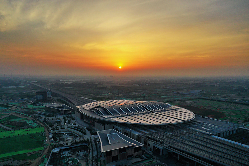 這是京雄城際鐵路雄安站(7月1日攝,無(wú)人機(jī)照片)。新華社記者 牟宇 攝