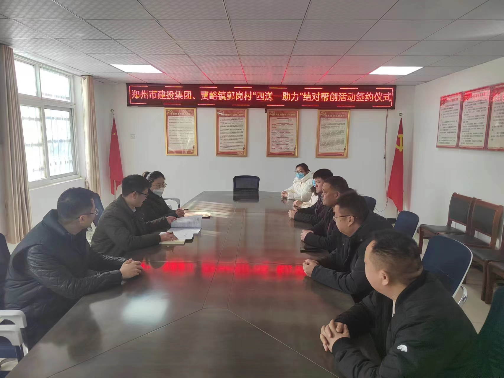 為適應城鄉(xiāng)一體化發(fā)展新趨勢,不斷縮小城鄉(xiāng)居民在精神文化生活方面的差距,進一步深化農村精神文明建設,促進城鄉(xiāng)精神文明融合發(fā)展,更好助力全面推進鄉(xiāng)村振興、加快農業(yè)農村現(xiàn)代化,按照市文明辦《鄭州市各級文明單位“四送一助力”結對幫創(chuàng)活動實施方案》要求,1月17日下午,受集團公司黨委書記、董事長、總經(jīng)理秦廣遠委托,集團公司紀委副書記趙少先帶領公司幫創(chuàng)工作組一行四人,前往結對滎陽市賈峪鎮(zhèn)郭崗村,組織開展“四送一助力”活動,助力幫創(chuàng)村“五星支部”創(chuàng)建和鄉(xiāng)村振興工作走深走實。