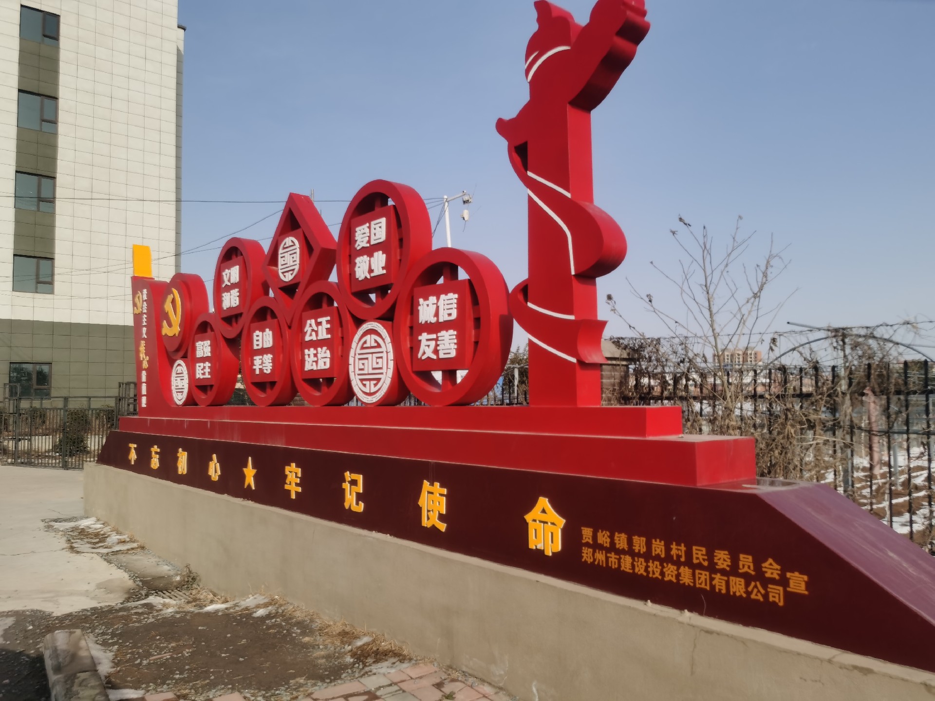 營造氛圍,助推文明創(chuàng)建“添動力”。在前期多次溝通基礎上,建投集團與郭崗村共同制作了“社會主義核心價值觀”主題墻1面,精神文明宣傳欄10塊,并完善了黨建宣傳長廊和村史館建設。“社會主義核心價值觀”主題墻由金屬底座和亞克力面板共同組成,整體大小約80平方,位于郭崗村村委后方的廣場中央。上方呈現(xiàn)著“24字”核心價值觀內容,清晰醒目,成為扮靚村容村貌的風景線和展現(xiàn)文明風尚的“新名片”。精神文明宣傳欄涵蓋習近平新時代中國特色社會主義思想、深入貫徹落實黨的二十大精神、弘揚優(yōu)秀傳統(tǒng)文化、倡樹文明新風等內容。黨建宣傳長廊和村史館是由建投集團在上輪結對幫扶中建設完成并已投入使用,本輪幫創(chuàng)進一步完善了鞏固脫貧攻堅成果展示、“五星支部”創(chuàng)建等內容。