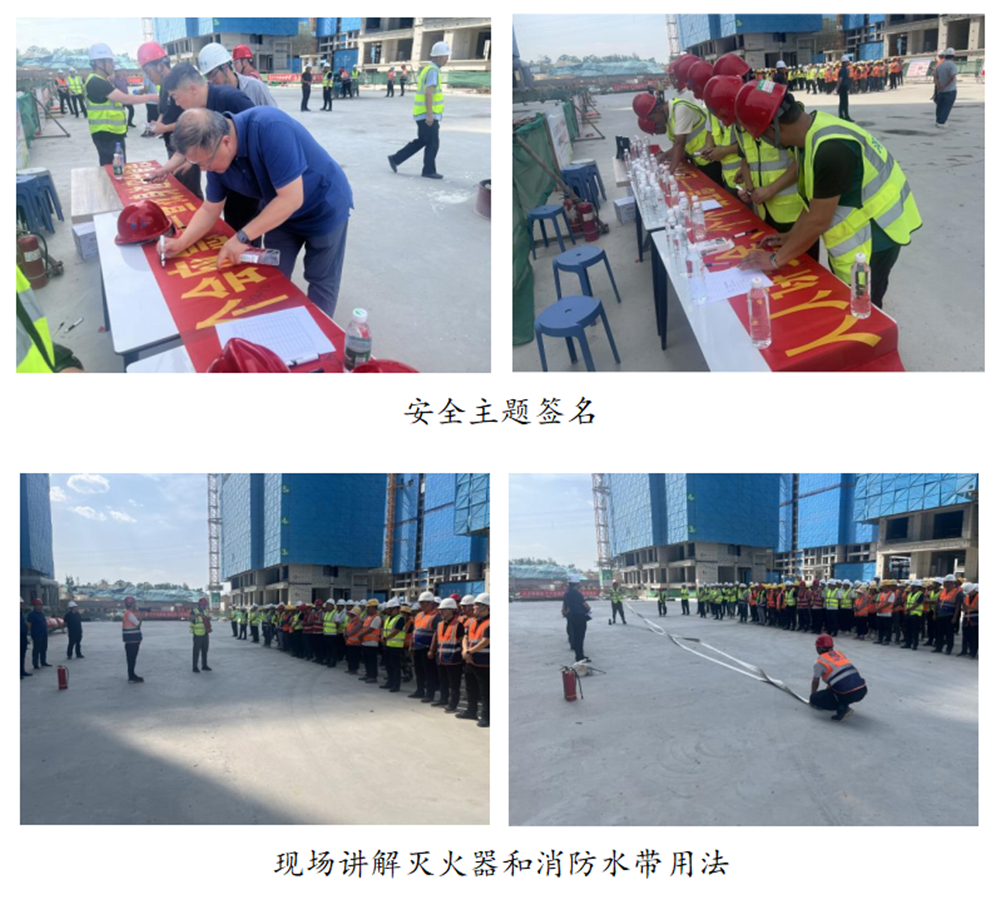 活動(dòng)期間,大家積極參與安全主題簽名和主題宣誓,講解員現(xiàn)場講解消防水帶和滅火器的用法,解答安全生產(chǎn)相關(guān)知識(shí),并開展了消防實(shí)戰(zhàn)演練。集團(tuán)公司分管安全生產(chǎn)的總經(jīng)理助理黃志澎作重要講話,強(qiáng)調(diào)了安全生產(chǎn)的重要性,要求各單位扎實(shí)做好今年防汛工作,并為一線工人發(fā)放防暑降溫藥品和安全知識(shí)手冊(cè)200套。