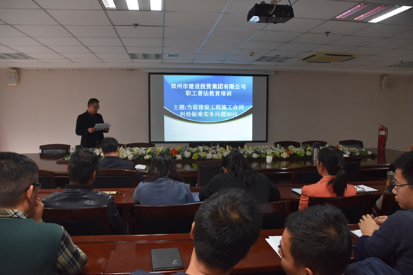 11月30日下午,根據(jù)《鄭州市人民政府國有資產(chǎn)監(jiān)督管理委員會關于印發(fā)鄭州市國資系統(tǒng)2018年“12·4”國家憲法日集中法治宣傳活動方案的通知》要求,為弘揚憲法精神,建設法治鄭州,集團公司在25樓會議室開展了《建設工程施工合同糾紛疑難實務問題》解讀培訓活動。本次教育培訓活動為視頻培訓,培訓課件主講人為袁華之律師,集團公司80多名員工參加本次活動。