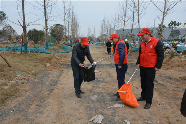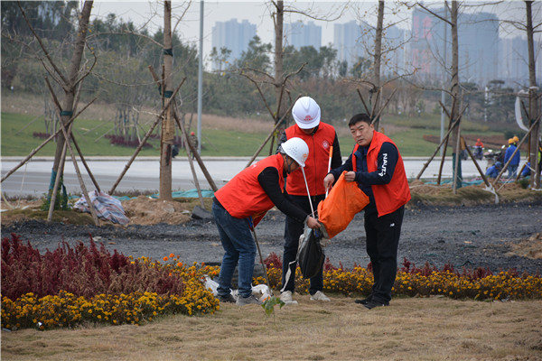 上午十時三十分,志愿服務(wù)活動開始后,集團公司黨委委員、副總經(jīng)理、項目部總經(jīng)理汪洋親自帶頭參加活動,其他黨員干部帶頭干,職工群眾積極干,參建單位負責(zé)人志愿加入干,大家拿起工具、彎下腰去,撿起草地上的生活垃圾,集中放進現(xiàn)場放置的垃圾桶內(nèi);沒有拿到工具的同志們也拿起簡易垃圾袋,將撿到的生活垃圾放進垃圾袋盛滿后再放進垃圾桶內(nèi)。一時間,黨徽熠熠、愛心閃閃、干勁滿滿,不到一個小時時間,約20人的志愿服務(wù)隊伍完成了近20000平米區(qū)域的垃圾清理任務(wù),景觀施工現(xiàn)場面貌大為改觀。