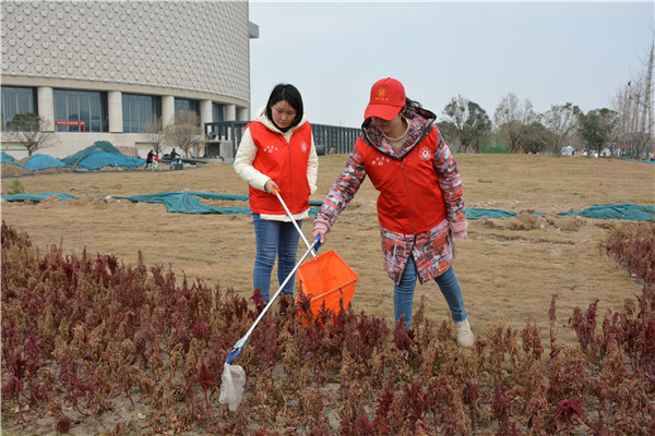 鄭州博物館新館室外景觀工程東側(cè)區(qū)域已初具形象,樹木成排、青草如茵、鮮花綻放。一段時間以來,由于個別參建單位對工人疏于管理,導(dǎo)致場地東側(cè)草坪上紙杯、塑料袋、飲料瓶隨處可見,嚴重影響了項目整體形象,也給景觀施工單位的成品保護工作造成極為不利影響。圍繞“不忘初心、牢記使命”主題教育活動的開展,項目部臨時黨支部號召項目部黨員職工以及所有參建單位現(xiàn)場負責(zé)人志愿清理現(xiàn)場生活垃圾。一方面,通過黨員干部帶頭志愿服務(wù)活動為景觀工程施工單位解決部分實際困難;另一方面通過號召和倡議,督促參建單位施工負責(zé)人約束管理好各自施工工人,杜絕向景觀施工現(xiàn)場拋灑生活垃圾,創(chuàng)造項目建設(shè)良好形象。
